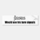 "Jesus would use his Turn Signals" Size : 11" x 3" Colour : white