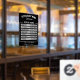 A simple custom business opening hours vinyl window cling decal sign template in a modern minimalist style on a black background. This versatile template allows you to easily design a custom opening times list for your store, salon, restaurant, cafe or any other business. Need help? Feel free to contact me using the message button. I am happy to help with your personalisation, additional items or custom orders.