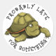 Introducing our delightful collection of stickers featuring the humourous phrase "Probably Late For Something" accompanied by an adorable and slightly exasperated turtle/tortoise image sourced from PixaBay. These versatile stickers are perfect for a wide range of creative endeavours, from special mailings and scrapbooking to engaging kids' activities and captivating DIY projects.