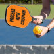 There is nothing like distracting your pickleball game playing opponents and this classic Proceed With Caution Sign with black lettering on top of a caution orange road sign background colour is perfect for this. Your opponent will be too busy being distracted looking at your cool looking paddle. Fun, funny, humour, comical, brilliant idea. This could be a game changer. 👍🏆