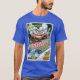 I give wanted to give this a 4 instead of a 5 because these Basic DARK T0shirts run unexpectedly SLIM or Narrow. Which is great if you do not have a potbelly, but I have a paunch. It isn't the shirt's fault that I've got a beer belly. The design and shirt itself is a quality cotton shirt. The color is more of a deep purple, but still a very pretty color. The Basic DARK T-shirts run a bit SLIMMER than the Basic Ts. The neck is a fraction narrower (or seems to be narrower) also. I'm a paunchy middle-aged woman and my neck is 12 inches (31cm) thick and the neckline fell about the same as in the photo of the man, and I had the desire to tug it a bit. So if you're a thick necked man or like loose shirts, be aware these are slimmer shirts. Once I get rid of my lockdown paunch it'll look great. The shirt washed well in cold water with no apparent bleeding. We don't have a dryer, so it hung dry. Did not shrink. Love the colors and the design. The design looks smaller on my shirt than it does on the model on-line. But still, it looks good on the shirt. The printing looks as it does on the model, just the size seems fractionally smaller. Washed garment in cold water, hung dry and design appeared unaffected.