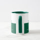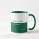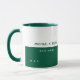 Simple and modern dark green coffee mug personalised with your own special name and profession. A half-green half-white design with sans serif font style.
