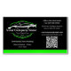 Professional Auto Detailing Car Wash Company, Automotive Cleaning Business Card. Featuring a sleek car design. Green and Black. Personalise and add your business details. Add your QR code to your website.