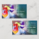 Business card featuring two glasses amidst colorful confetti and sparkling lights.