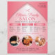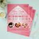 Professional beauty salon price list advertisement flyer features a pink arch background, 3 customisable photos & a pink scissor clipart. Customisable to your liking.
