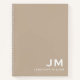Modern notebook features a simple beige and white colour palette. Custom name presented in the lower right-hand corner with complimentary monogram initials in bold classic block typography.