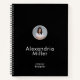 Modern notebook features a minimal design in black and white with bio photo headshot. Custom name and title centred on the front with complimentary bio photo. Custom text with QR code on back. A modern professional notebook for business promotion or networking. Ideal for consultants, attorneys, real estate agents, corporate or executive coaches, or any other business professional, or a thoughtful office gift.