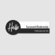 This professional name tag features a name in black on the white background and below on a white background is the title or business name in white. Hello in matching white text is in the circle on the left and can be changed or removed. Personalize the text fields or edit using the design tool to select a font style, size, and color you prefer.