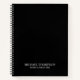 Professional notebook features custom name and text in white classic serif font style on black background.