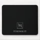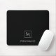 A professional black and white mousepad with a simple modern square monogram and a template to personalise with a name.