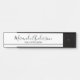 Professional Black and White Door Sign featuring name in black modern script font style and profession in black modern sans serif font style, with bottom black border, on white background.