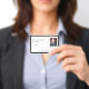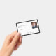 This design offers a placeholder for your logo, ID number, photo, and bar code.