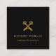 A Professional black & gold notary business card that features a golden crossed skeleton key and pen icon and the notary name on a black background. This sleek business card for notaries is easy to customise before purchase!