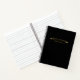 Our Notebook has a sleek black background, designed to make every note you take feel like a statement. On the front lies striking gold name, personalised just for you, with an elegant bar, below it sits your profession or job title in crisp gold lettering, adding a timeless touch.