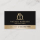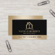 Elegant Black & Gold Antique Key & House Logo Real Estate Agent Business Cards.