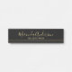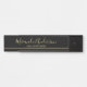 Professional Black and Gold Door Sign featuring name in gold modern script font style and profession in gold modern sans serif font style, with bottom gold border, on black background.
