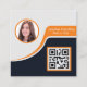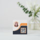 Professional Black Orange add your Logo QR Code Square Business Card