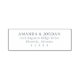 This rubber stamp features a clean, minimalist design with a simple black and white color palette. The layout is vertically aligned, showcasing bold, uppercase text for the names at the top, followed by an address in a smaller serif font. Its modern style emphasizes clarity and professionalism, making it ideal for personal or business correspondence. The straightforward typography ensures legibility, while the absence of decorative elements keeps the focus on essential information. Perfect for those seeking a functional yet stylish way to imprint documents.