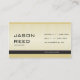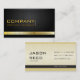 Business card design with front and back page on black background (front) and ochre (back) with classy stripes.