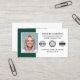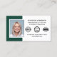 Make a professional impression with this contemporary business card design. Easily personalise it with your photo, name, job title, address, and contact details. Space is provided for your logo and two accreditation logos. All the text and images can be customised or deleted to suit your business needs. Printed colours: dark green, black and white.