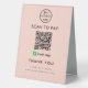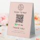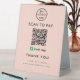 Boost your business's contactless payment options with this professional Cash App QR code scan to pay logo Table Tent Sign. Sleek and stylish, this sign is perfect for displaying at your checkout counter, restaurant table, or anywhere customers can easily scan and pay. Customise the design with your business logo and personalise it with a message.