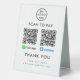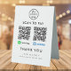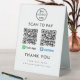 Boost your business's contactless payment options with this professional Cash App Venmo QR code scan to pay logo Table Tent Sign. Sleek and stylish, this sign is perfect for displaying at your checkout counter, restaurant table, or anywhere customers can easily scan and pay. Customise the design with your business logo and personalise it with a message.