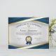 This professional certificate of achievement award design features blue, gold, and white colours, grey background with white detailed lines and a gold border. Includes two medal awards.