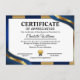 This elegant Certificate of Appreciation features a professional blue and gold design, perfect for recognizing employees, teachers, students, or team members. Ideal for corporate awards, years of service recognition, school achievements, and formal appreciation ceremonies. Fully customizable with name, organization, date, and signature. A timeless and professional certificate suitable for business, education, and organizational use.
