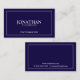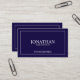 Professional Classic Navy Blue and White Business Card featuring your information in white and grey serif font style with white rectangle border.