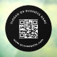 A modern professional black and white minimalist business QR code design for marketing and networking. You can change the font, font size, font colour, letter spacing, line spacing, circle background colour and reposition the text using the Design Tool.