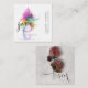 Modern Professional Curvature Grey, Black and White Fancy Script Monogram Business Card with watercolor bursting floal vase in front and tulip red flowers in back.
