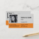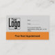 A Professional Custom Image Service Business Appointment Card is a useful addition to show professionalism. It is a personalised landscape card in grey, black and orange. The front features a custom profile image on the left and name, position and company on the right, all in black text on a grey background. The orange area in the bottom quarter contains contact and address information. The back of the card has space for a logo, appointment and cancellation policy, and the orange text box at the bottom states the purpose of the card in bold letters.