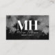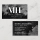 Simple Elegant Makeup Artist Black Silver Monogram Business Card. You can change it to any business you want, makeup artist, lash specialist, hair stylist, or even something like marketing, consulting, and more! Featuring a black background and faux silver watercolor or alcohol ink (a bit of a marble feel) to give the backdrop to this card, and white bold typography mixed with an more elegant script font with the details. A trendy and chic look that is still professional and elegant.