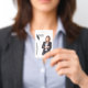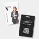 Modern, elegant and professional business id badge. Design features a cutout photo placeholder to display your own cutout business photo, your company logo, name and title on the front. Personalise further with your company details, qr code on the back. In order for the design to look like the sample template, upload your personal business photo with a transparent or white background in PNG format. Font, text size, colours can be customised.