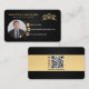 Modern, professional black and gold Real Estate Agent Photo Business Card. Design features your photo, gold logo, name and contact details on the front. Personalise further with your qr code and social media on the back.