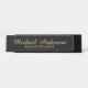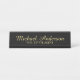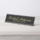 This desk name plate features name in modern script font style and title in gold professional serif font style on black background.