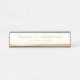 Professional Elegant White and Gold Desk Nameplate featuring name and profession in gold classic serif font style, with bottom gold border, on white background.
