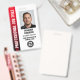 Professional employee badge with a profile photo and company logo. This editable template can be personalised with a photo, name, job title, ID number, business name, QR code, and company logo for branding. A modern design with gradient stripes and a clean font. It offers fully customisable text to fit your business brand. Ideal for various workplaces and roles, such as security guard, store security, private security, personal bodyguard, official doorman, event team, corporate professional, retail assistants, medical staff, small business pass, conference name tags and more! Printed colours: black, white and red. Shop the collection for more popular security product ideas and supplies for sale online.