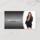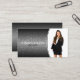 Black ombre sets off the front of this business card design featuring a photo placeholder on the right with name and occupation on the left. The back includes coordinated design and colours with text fields for the business name and details. Replace