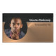 This professional magnetic back name tag features a name in white on the black background and below the title in white on a flared copper background with a template photo. Personalise the text fields or click customise to select a font style, size, and colour you prefer. Replace the photo with yours. A square photo works best.