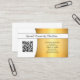 A gold with centre flair sets off the background of this business card design that features your QR code. Fill in the template fields or click customise to select a font style, size, and colour you like. Be sure to add your QR code on the front. Use the QR code link to send customers to reviews, photos, your website or another important link. And the back in a matching pastel pink leaves ample room for personal handwritten notes.