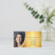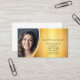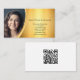 A gold with centre flare sets off the background of this business card design that features your custom photo on the front and QR code on the back. Fill in the template fields or click customise to select a font style, size, and colour you like. Be sure to add YOUR QR code on the front and a vertical photo on the back. Use the QR code link to send customers to reviews, photos, your website or another important link.