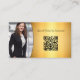 A gold with centre flare sets off the background of this business card design that features your custom photo and QR code on the front with business details on the back. Fill in the template fields or click customise to select a font style, size, and colour you like. Be sure to add YOUR QR code and a vertical photo. Use the QR code link to send customers to reviews, photos, your website or another important link.