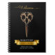 An professional hair stylist notebook featuring a pair of scissors on the front and your business information on the back. Designed for you by The ART Treasure.