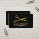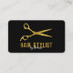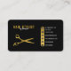 A modern gold hairdressing scissors with chic black background ideal for hair stylists or beauty salon related businesses. A simple and professional way to introduce your business. Personalise your business and social media details to create your own unique business card.