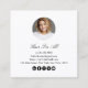 Simple Professional Hairdresser Salon Modern Square Business Card with your business logo, Name, Photo, Business name, and contact information (telephone number, e-mail, website, mailing address) in a simple black and white typography. Upload your photo for customers to conveniently remember you.