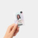 A modern, and professional pastel holographic pearl nacre nurse photo id badge with logo and barcode.