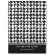 Make a bold statement with this classic style clipboard. A chic design featuring the iconic houndstooth pattern, paired with contrasting stripes. Make it yours by adding a name, a website or other information. A versatile tool for your home or office, that can be used for organising important papers, displaying paperwork, a useful drawing board on location, and more! The same design and personalised text is repeated on both sides. Printed colours: black and white.