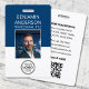 Professional ID badge with a profile photo and company logo. This editable template can be personalized with a name, job title, contact details, employee ID number, and a scannable QR code. It features simple, modern typography and a minimalist aesthetic. This stylish badge is suitable for workplace identification, security, networking, conferences, and any role requiring visible ID. It offers fully customizable text to fit your business brand and is is ideal for a wide range of professions, including Corporate & Executive Roles, Business Consultants, Entrepreneurs, Small Business Owners, Legal Professions, and many others. Printed colors: dark blue navy, black and white, or customize the colors with the design tool.