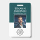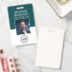 Create a professional ID badge for your business. Upload your own company logo and profile photo, then personalize the text with a name, job title, contact details, employee ID number, and a scannable QR code. It features simple, modern typography and a minimalist aesthetic. This stylish badge is suitable for workplace identification, security, networking, conferences, and any role requiring visible ID. It offers fully customizable text to fit your business brand and is is ideal for a wide range of professions, including Corporate & Executive Roles, Business Consultants, Entrepreneurs, Small Business Owners, Legal Professions, and many others. Printing colors: dark teal green, black and white, or customize the colors with the design tool. Explore the online collection for matching printed designs!
